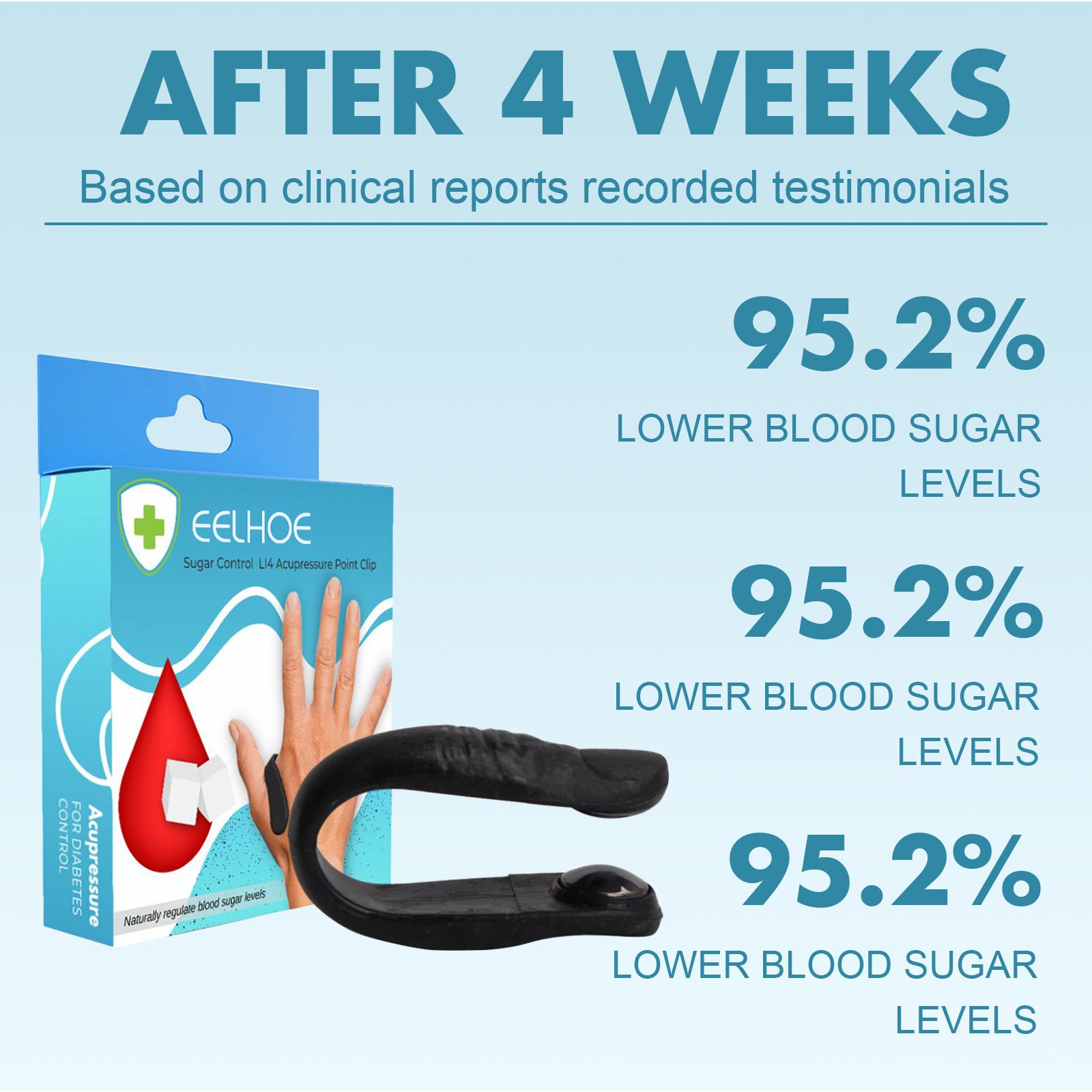 "With constant and continuous progress, there have been significant changes to my body. I feel healthier. I have lost 52 pounds. My doctor says that my blood flow was active and normal compared to when I was not yet using this LI4 acupressure point clip.