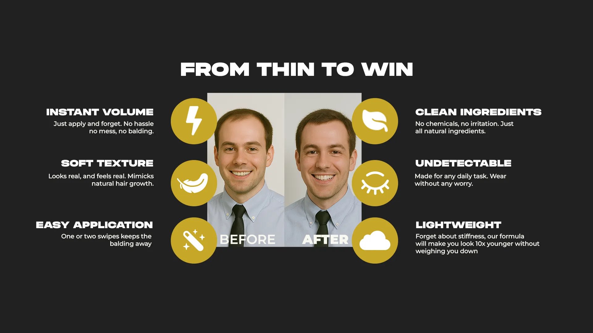 B:This tinted powder blends perfectly with the hair and scalp to instantly cover thinning strands. It takes seconds to apply and lasts all day for fuller hair, with no steps required.