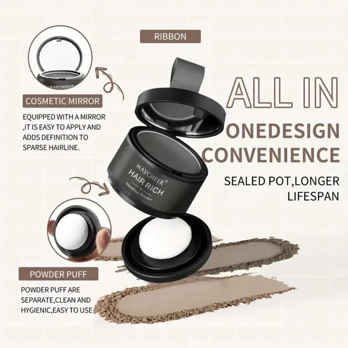 Natural Hairline Modification:Hairline Shadow Powder is a natural color, specially designed to modify your hairline. It beautifies the forehead curve, provides natural and soft color without damaging the hair, and fills and volumizes thinning hair.