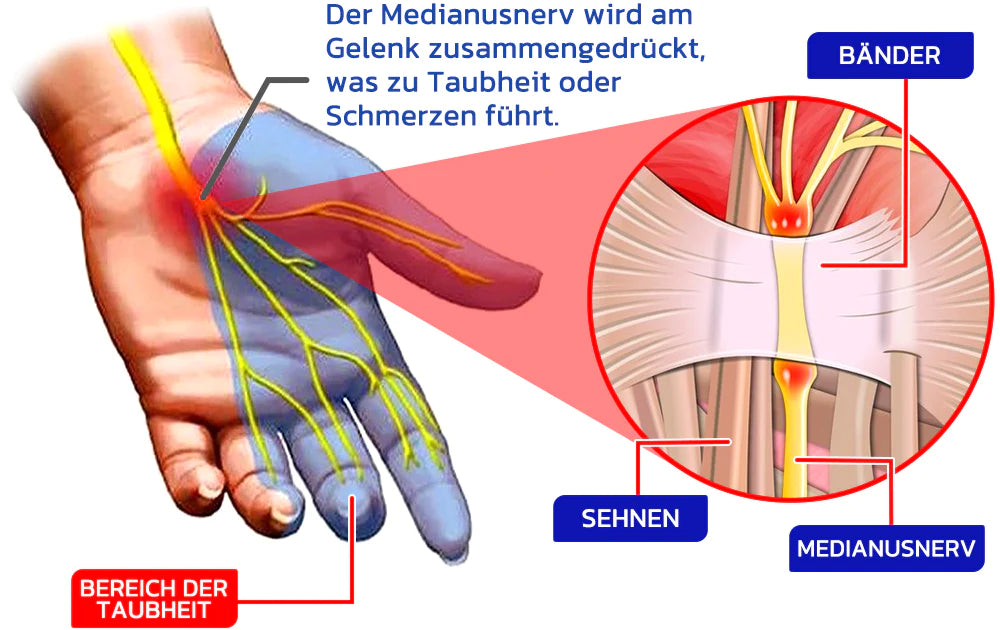 The neurological system is responsible for transmitting information between the brain and the rest of the body. Pressure on the blood vessels supplying blood to the nerves causes a temporary blockage of circulation, resulting in a temporary lack of energy supply to the muscles and nerves, preventing the brain from obtaining the information it should be able to receive through these nerve bundles, resulting in tingling in the arms or legs. Numbness in the arms or legs can occur when the tendons in the carpal tunnel become thickened or inflamed, or when the connective tissue around the nerve becomes edematous or fibrotic, a common cause of narrowing of the carpal tunnel, which compresses the median nerve.