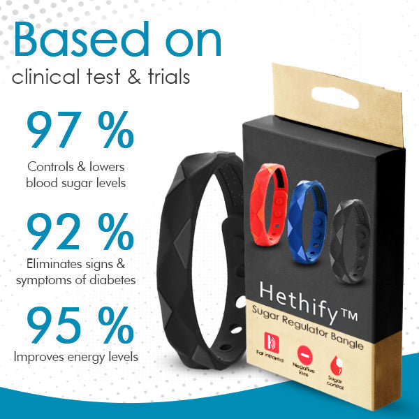 The Hethify™ Sugar Regulator Bangle is infused with negative ions, which are emitted from the bracelet and absorbed by the body through the skin. The negative ions help to improve circulation, which can lead to a reduction in blood sugar levels. Additionally, negative ions can help to regulate insulin secretion and improve insulin sensitivity, which is crucial for maintaining healthy blood sugar levels.