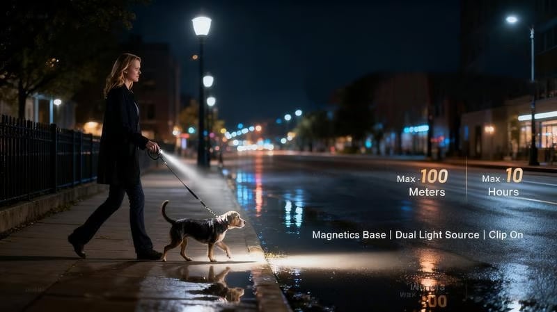 Imagine: Walking your dog at night with a bright beam cutting through darkness 🐶; Fixing your car engine with hands-free magnetic mounting under the hood 🔧; Verifying bills with the UV light while traveling ✈️; Starting a campfire quickly with the built-in fire starter during outdoor trips 🔥; Even chopping veggies in the kitchen with it attached to your cabinet (no more fumbling with handheld lights) 🍳. This flashlight fits every moment.