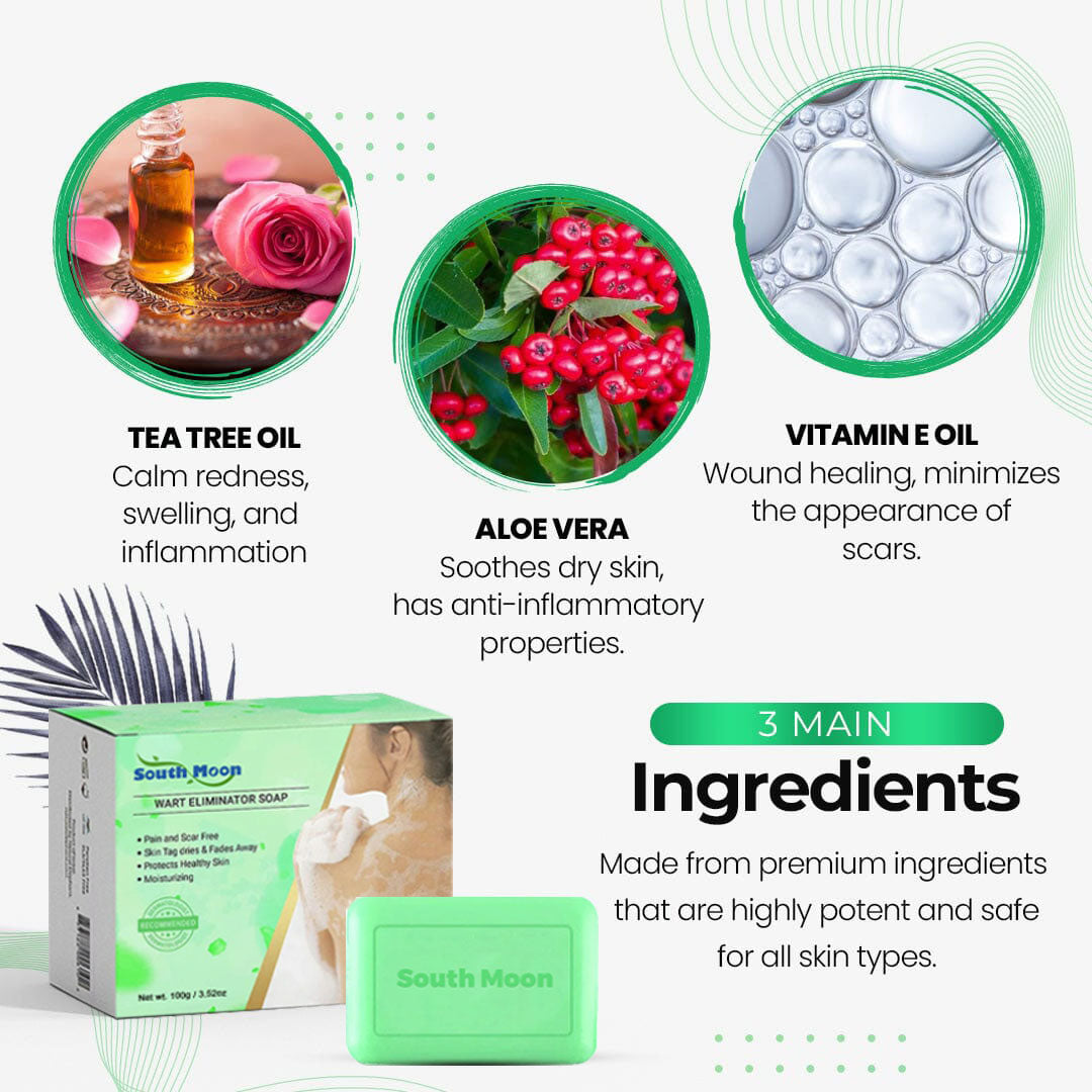 - Say goodbye to harsh chemicals and painful treatments with South Moon Wart Eliminator Soap - formulated with natural ingredients including tea tree oil, aloe vera, and Vitamin E oil